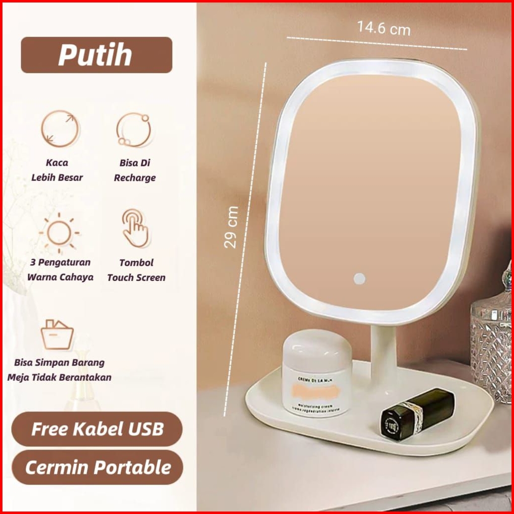 Cermin Rias Led Kaca Makeup Led Portable Mirror Rechargeable Panda99