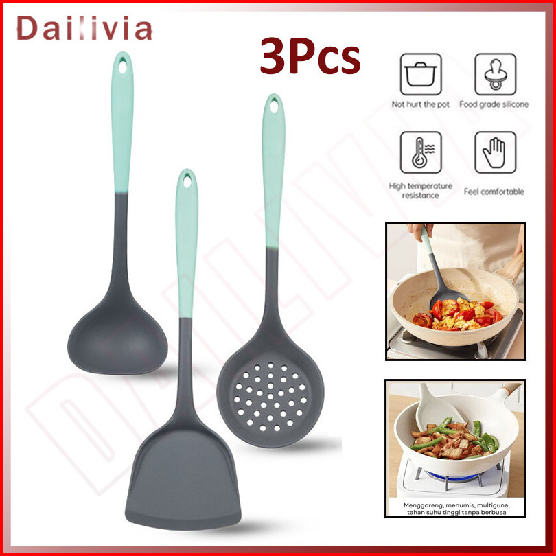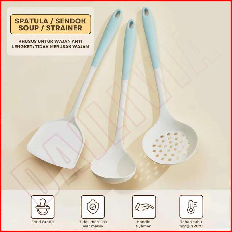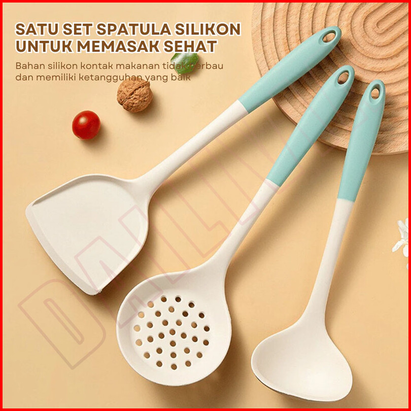 Dp - 3pcs Alat Masak Silicone Cooking Utensil Spatula Set Putih Sutil Silicone Alat Masak Silikon Tahan Panas