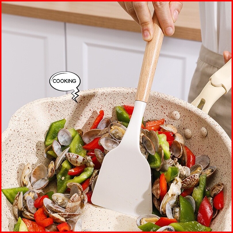 Spatula Peralatan Masak Sutil Pegangan Kayu Silikon Alat Masak Utensil Premium Kitchen 3pcs Spatula Silikon Gagang Kayu