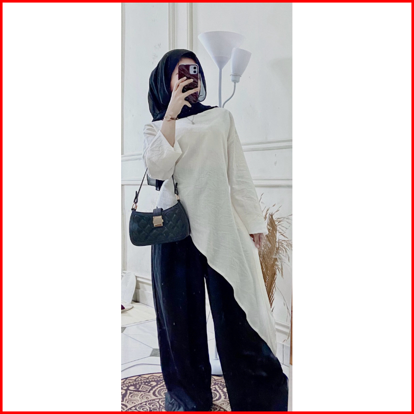 Luxsi Tunik Wanita Muslimah Blouse Tunik Terbaru Jiper Sleting Belakang Aktif -bahan Voal - Casual