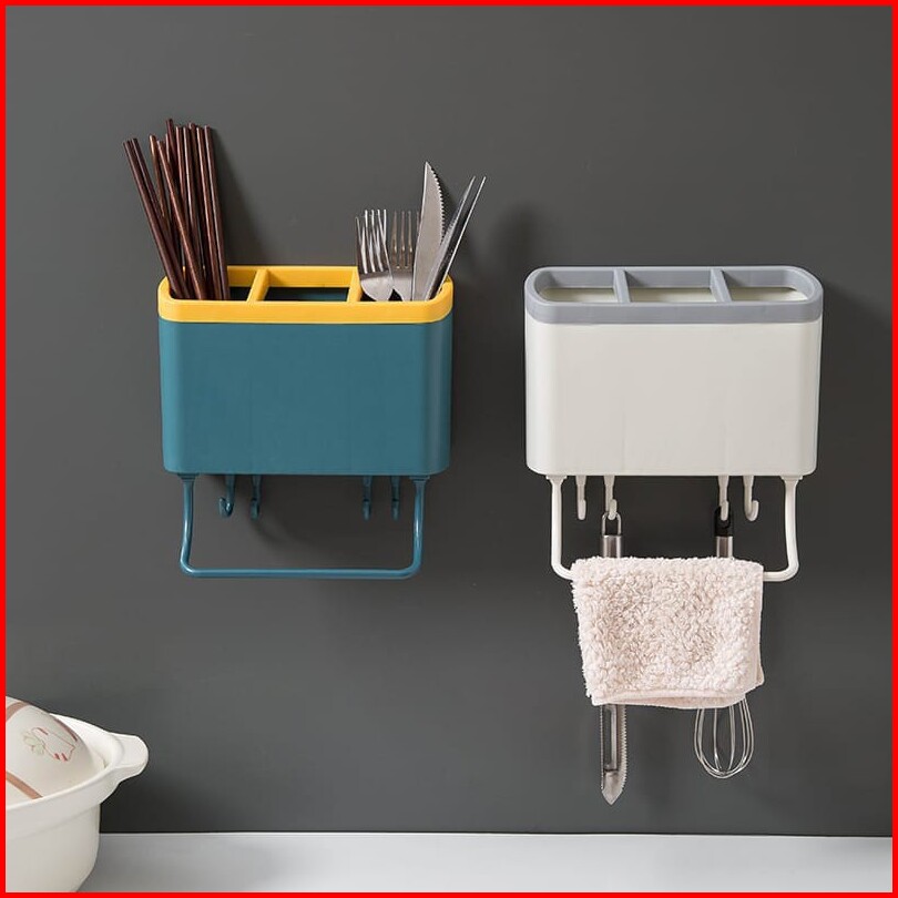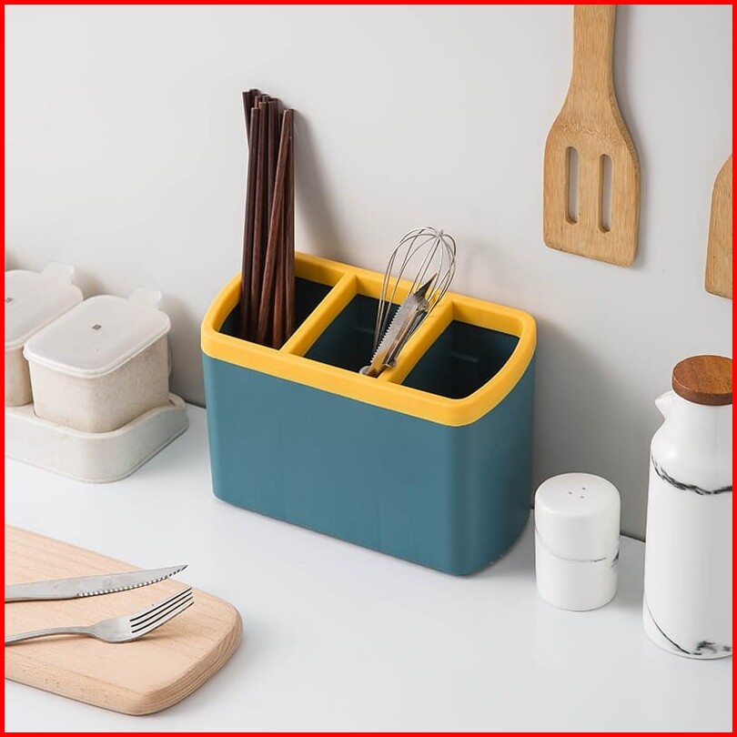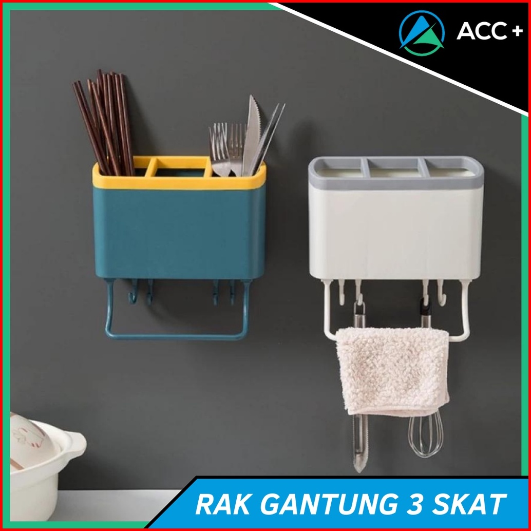 Rak Gantung 3 Sekat - Kotak Tempat Sendok Garpu Multifungsi - Tempat Penyimpanan Serbaguna