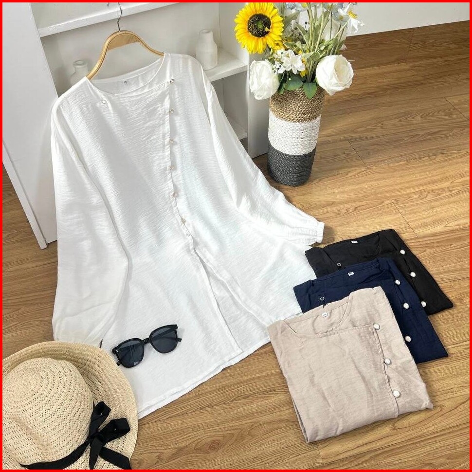 Akavi - Kalisa Side Button Tunik Linen Super Jumbo Tunik Bigsize Atasan Oversize Ld 120 130 140 150 349gr