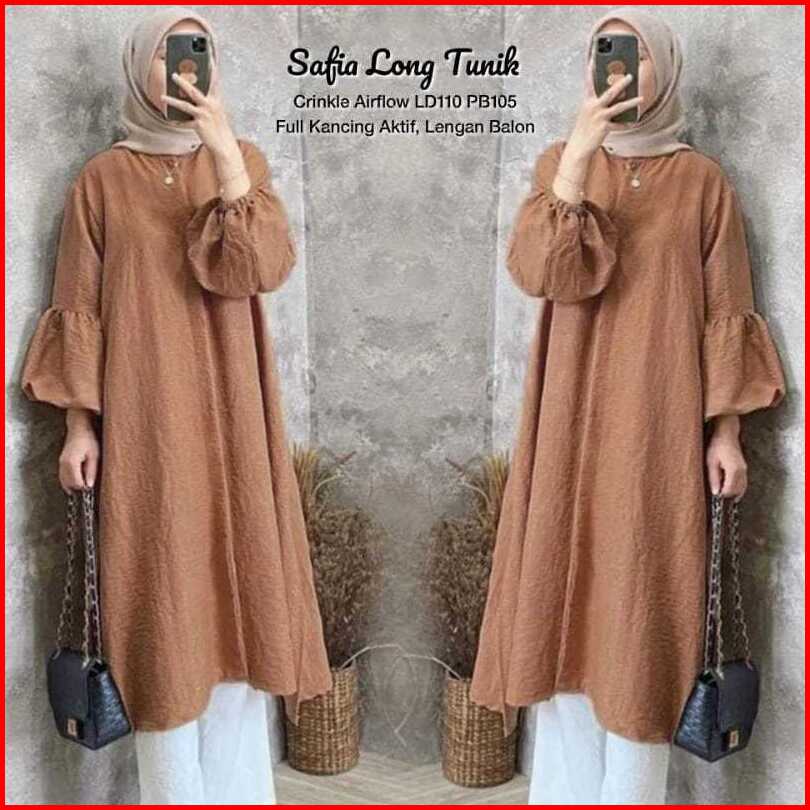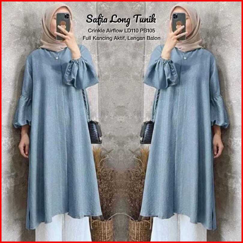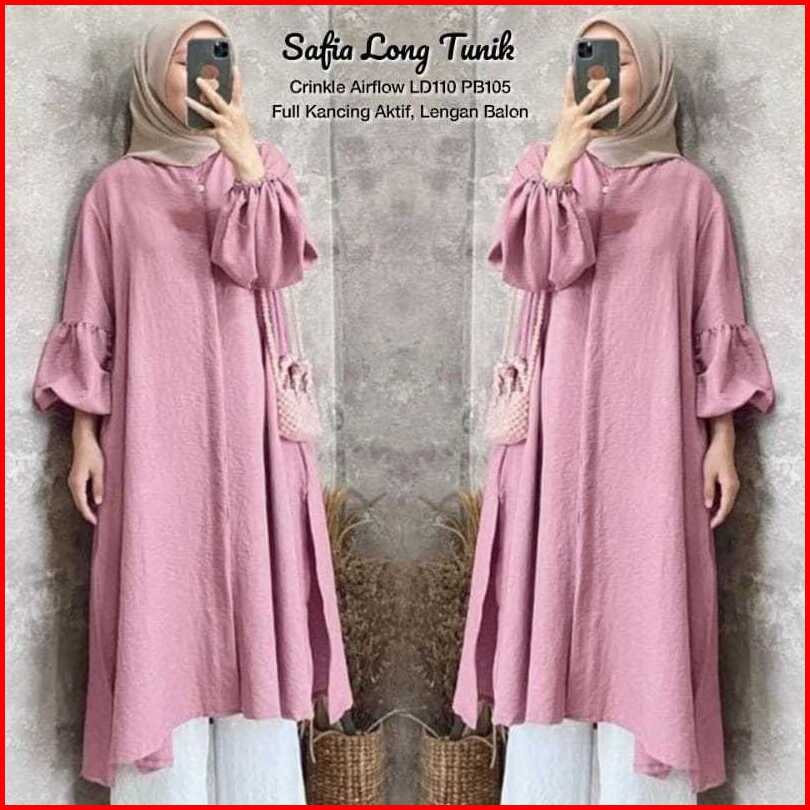 Safia Long Tunik Crinkle Airflow Baju Atasan Wanita Tunik Remaja Muslim Kekinian