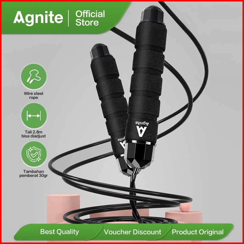 Agnite Jump Rope Skipping Lompat Tali Adjustable 2.8 M Alat Olahraga Wire Steel Rope Er040