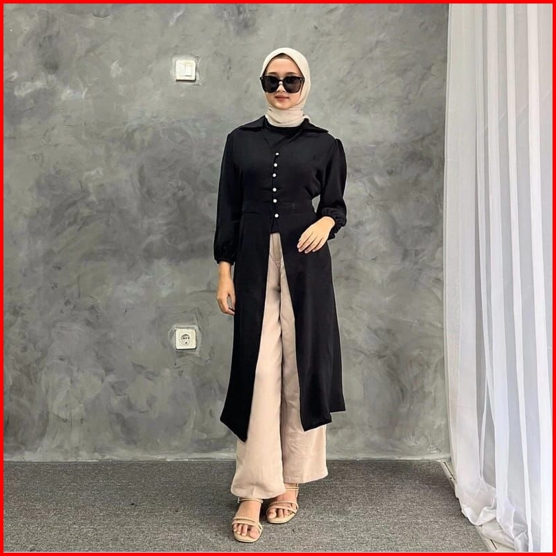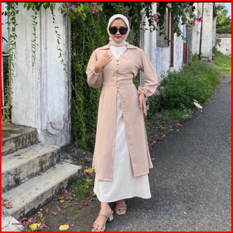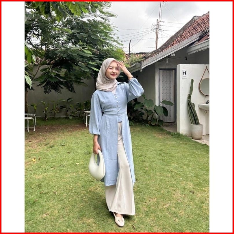 Thena - Tunik Tunik Crinkle Airflow Panjang Polos Tunik Korean Style Outer Big Size M - 4xl