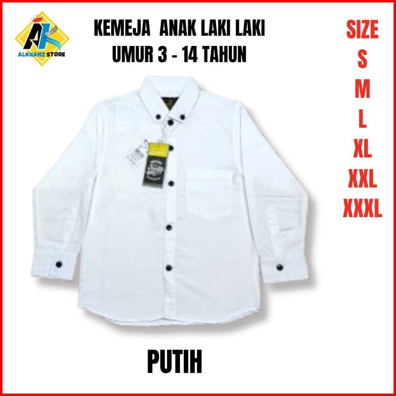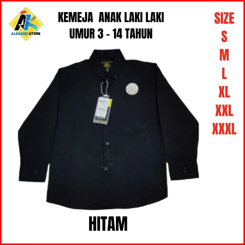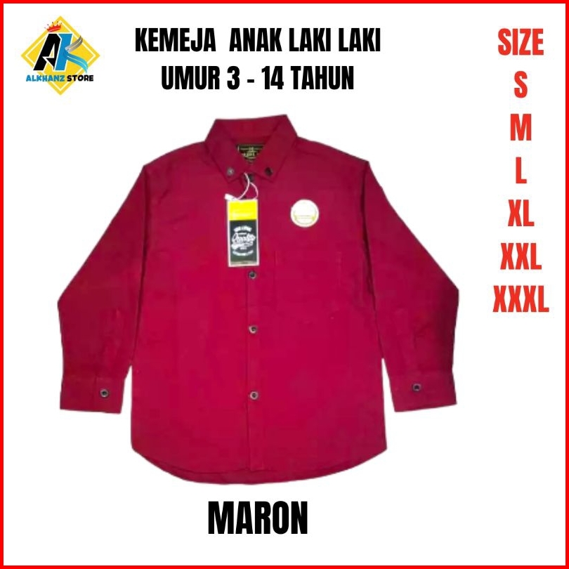 Kemeja Anak Laki Laki Lengan Panjang Motif Polos Umur 3 - 14 Tahun Katun Original Hem Slim Fit