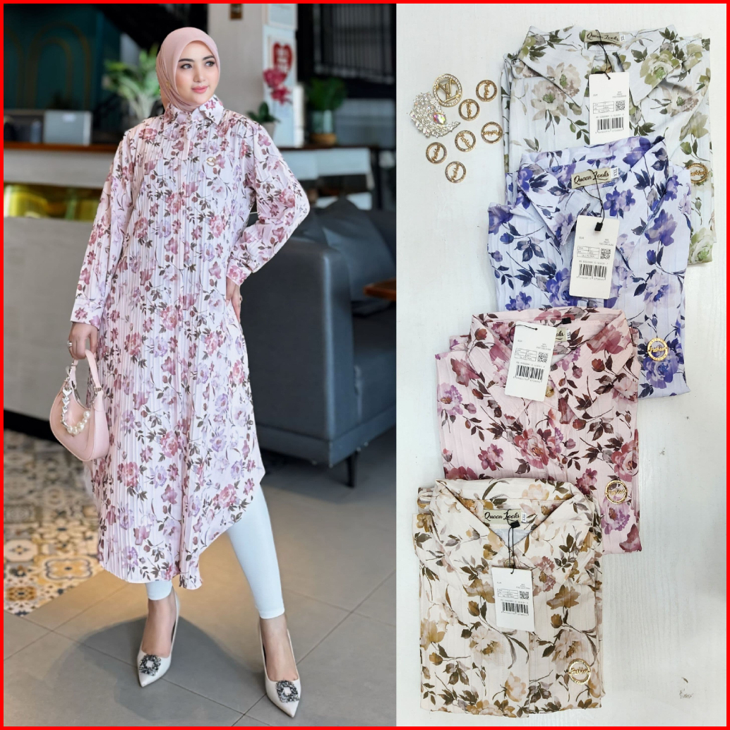 Azizah Long Tunic Ld110 Pb120 Motif Mewah Elegan Premium Baju Atasan Wanita Lengan Panjang Muslim