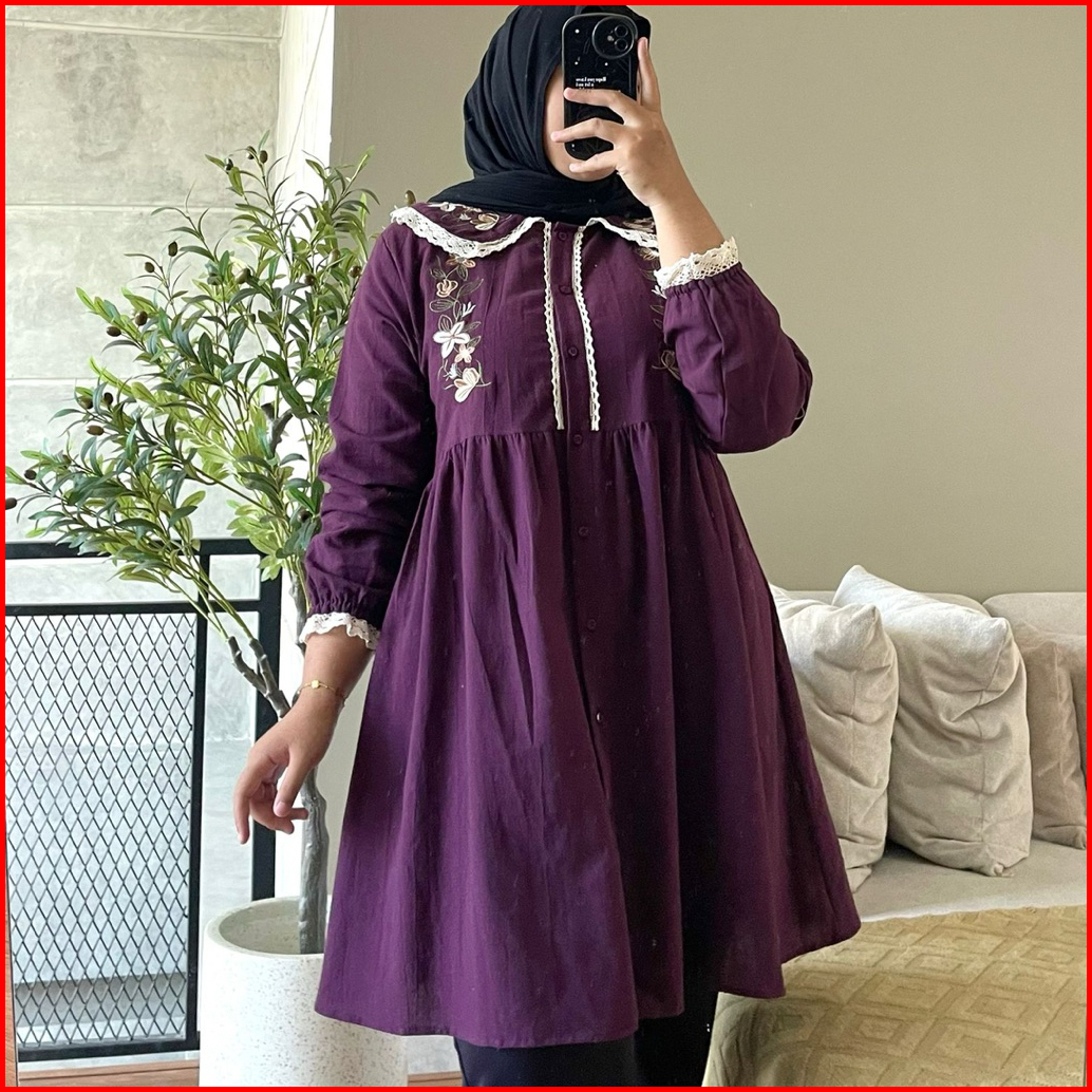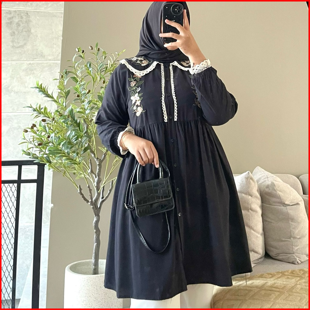 Hanako 558 Tunik Collar Renda Bordir