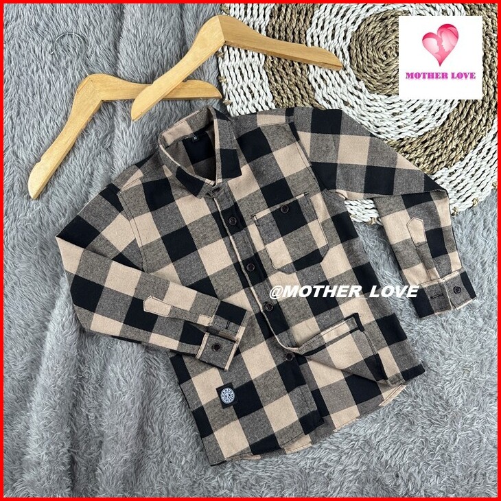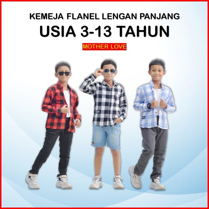 Kemeja Flanel Anak Laki-laki Lengan Panjang Motif Kotak-kotak Umur 3-13 Tahun