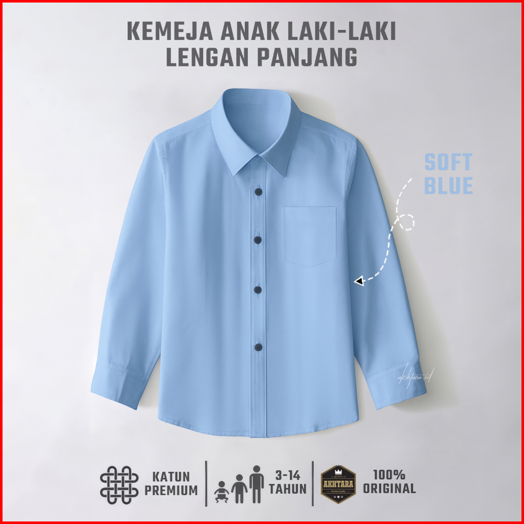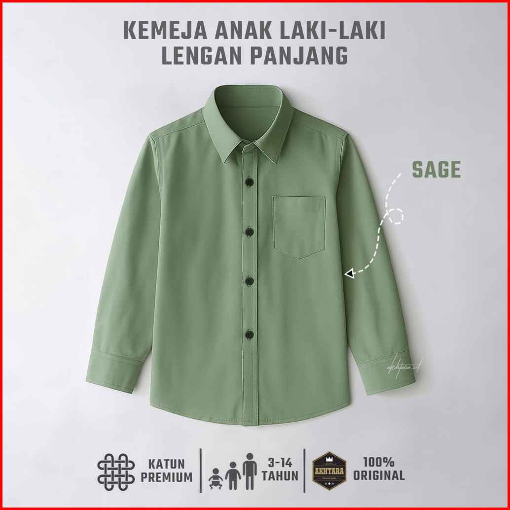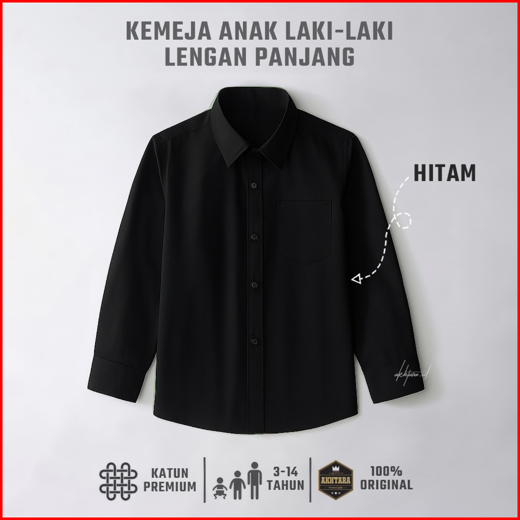 Kemeja Anak Laki Laki Polos Lengan Panjang Warna Putih - Hem Polos Anak Umur 3-14 Tahun
