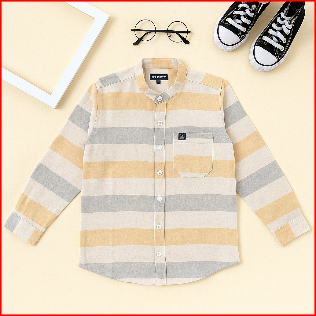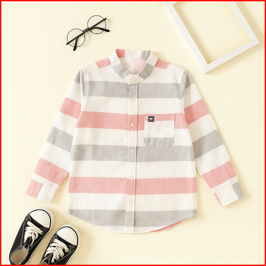 Kemeja Flanel Anak Motif Stripes Salur Umur 2-10 Tahun Trand 2026 Lengan Panjang