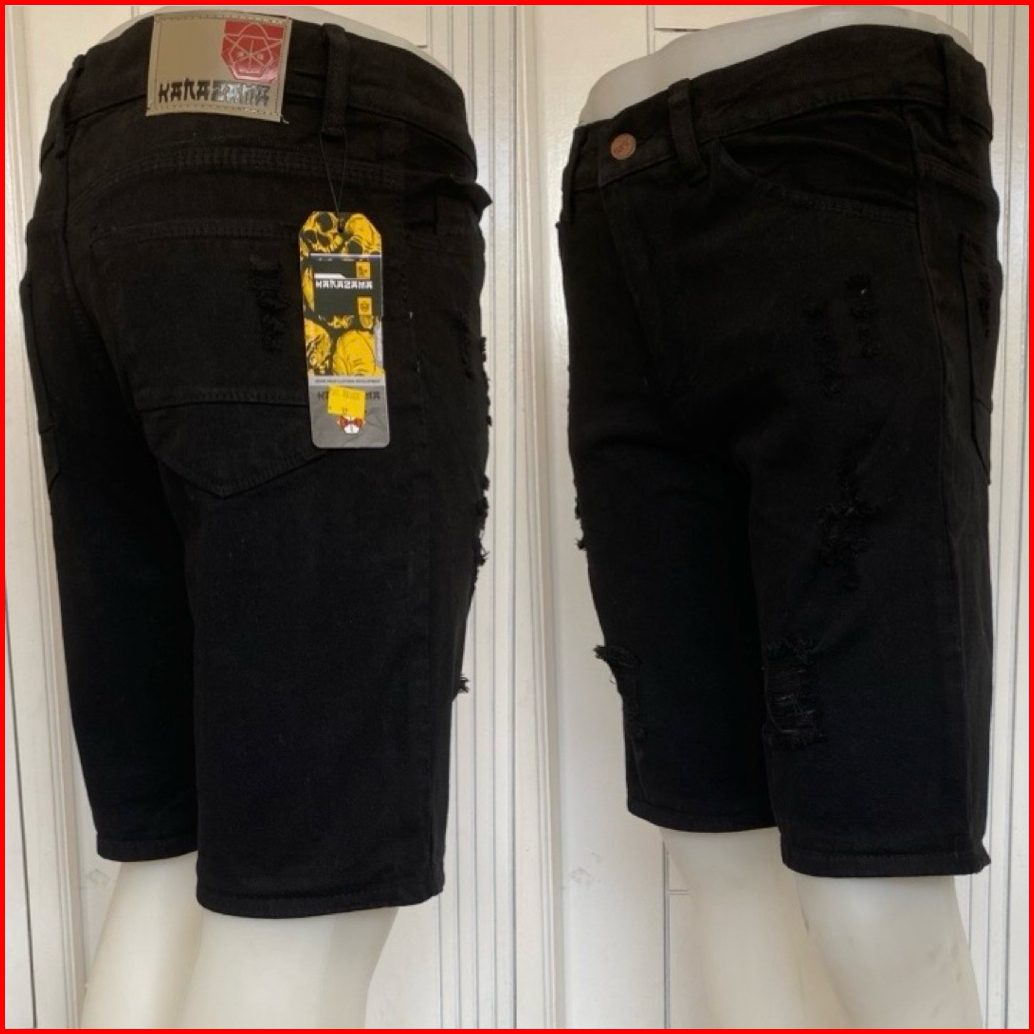 Celana Sobek Pendek Jeans Pria Dewasa Warna Biru Tua Navy Dongker Muda Hitam Pekat Cowo Cowok Ukuran Jumbo Besar Big Siz