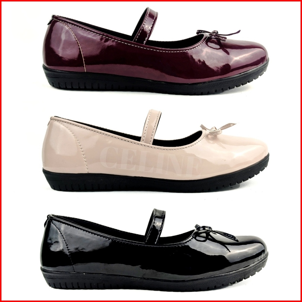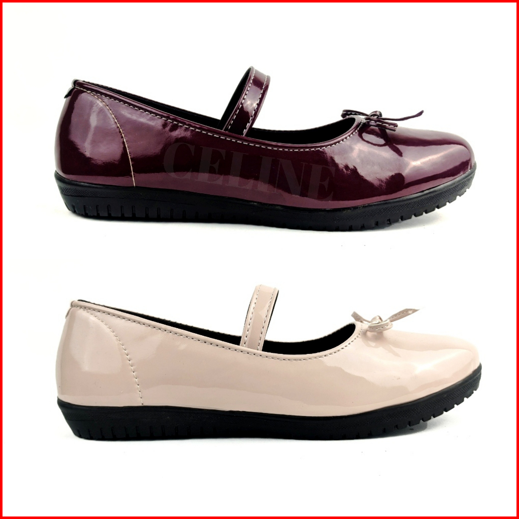 Sepatu Wanita Flatshoes Motif Tali Pita Flat Shoes Glosy Cream Burgundy Size 37-40