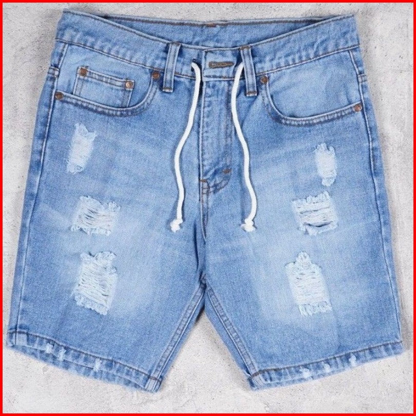 Celana Jenas Sobek Pria Denim Jeans Celana Pendek Sobek Cowok Jeans