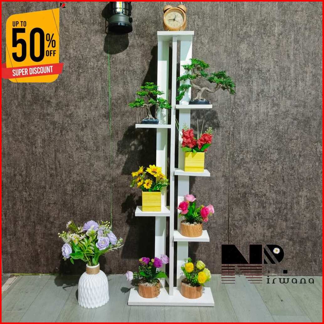 Rak Kayu Hias Untuk Dekorasi Rimah Tempat Bunga Hias Spesial Putih Tinggi 1 Meter