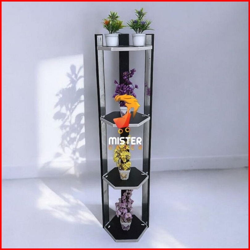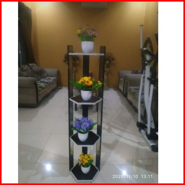 Rak Pajang Hexagonal 4 Tingkat 125x30cm - Rak Pajang Bunga Rak Lantai - Rak Pot Serbaguna