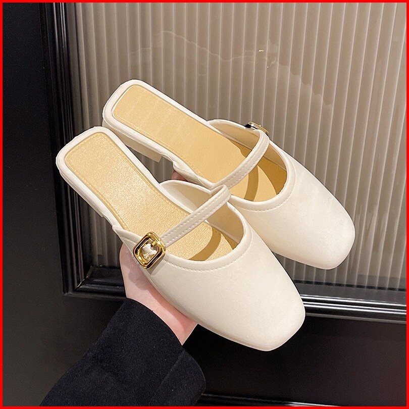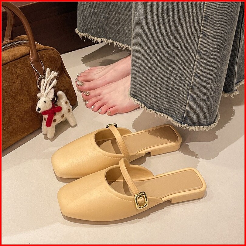 Ori Sandal Semi Sepatu Menutup Sandal Flat Wanita Sepatu Wanita Fashionable Gaya Korea Motif Kait Fashion Sepatu