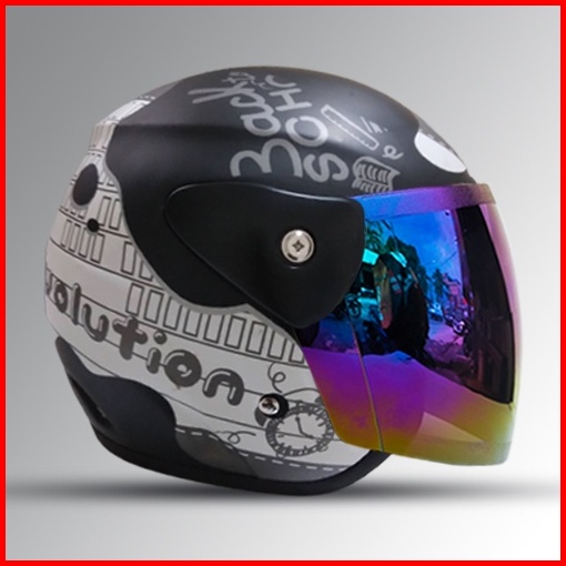 Helm Dewasa Half Face Inovation Motif Model Gm Evo Kaca Pelangi Kaca Silver Untuk Pria Dan Wanita Dewasa Fee Packing