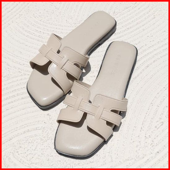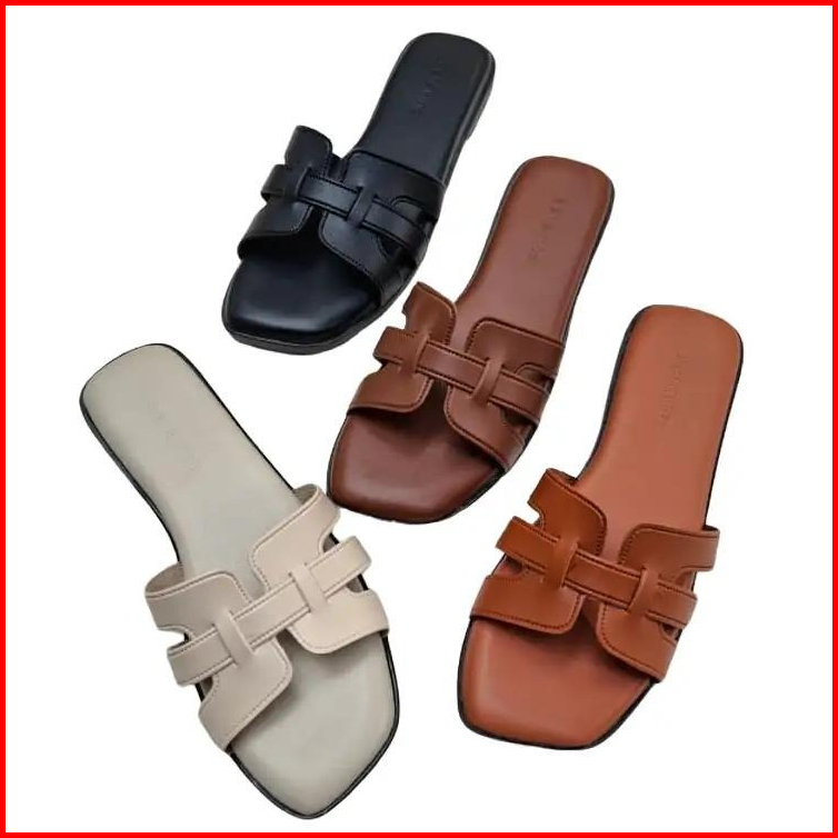 Vinshoes - Leona Flat Sendal Slop Teplek Wanita Kekinian Simple Casual Elegant Empuk Anti-slip