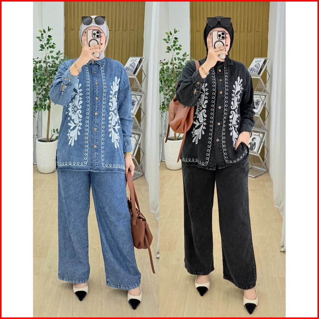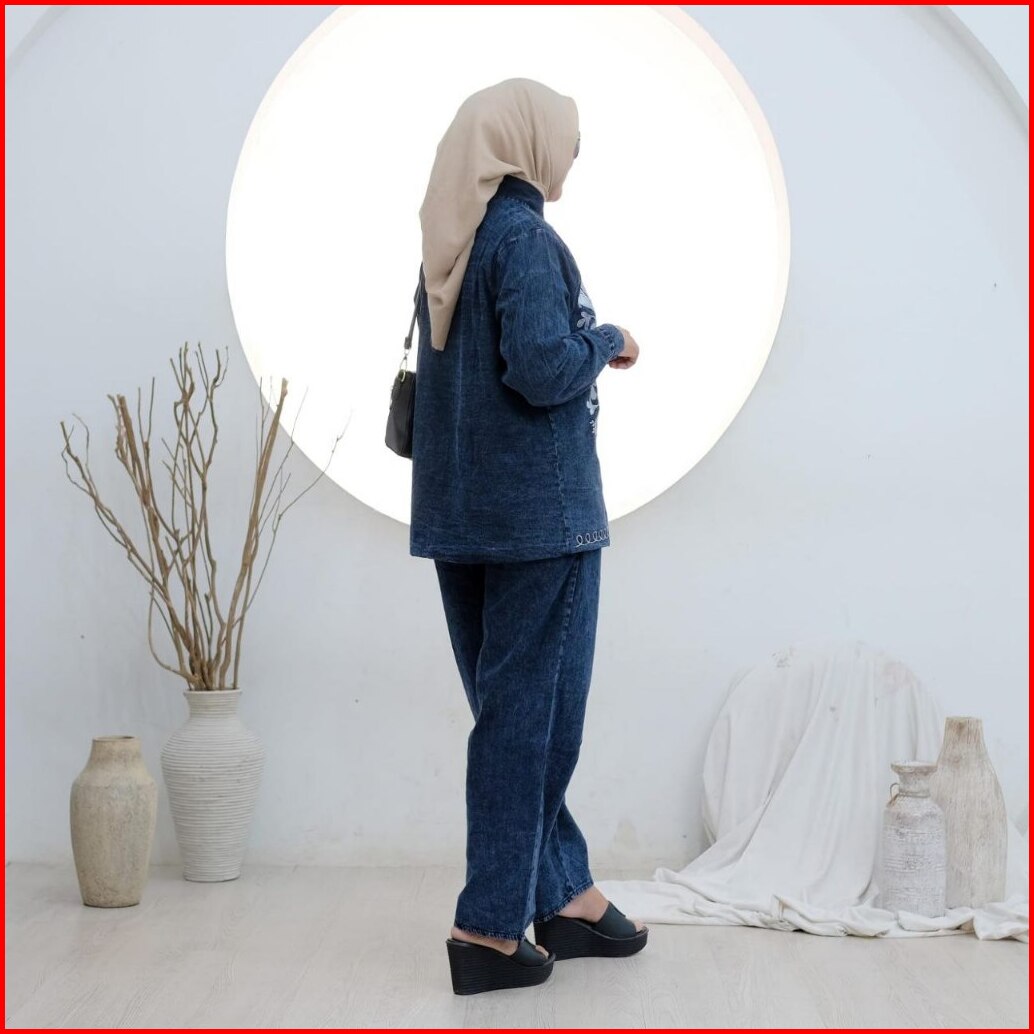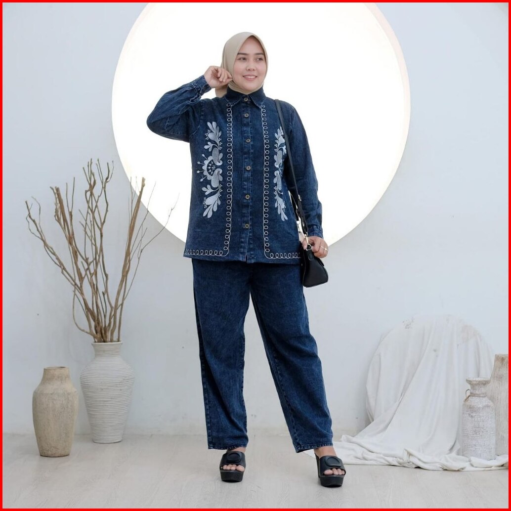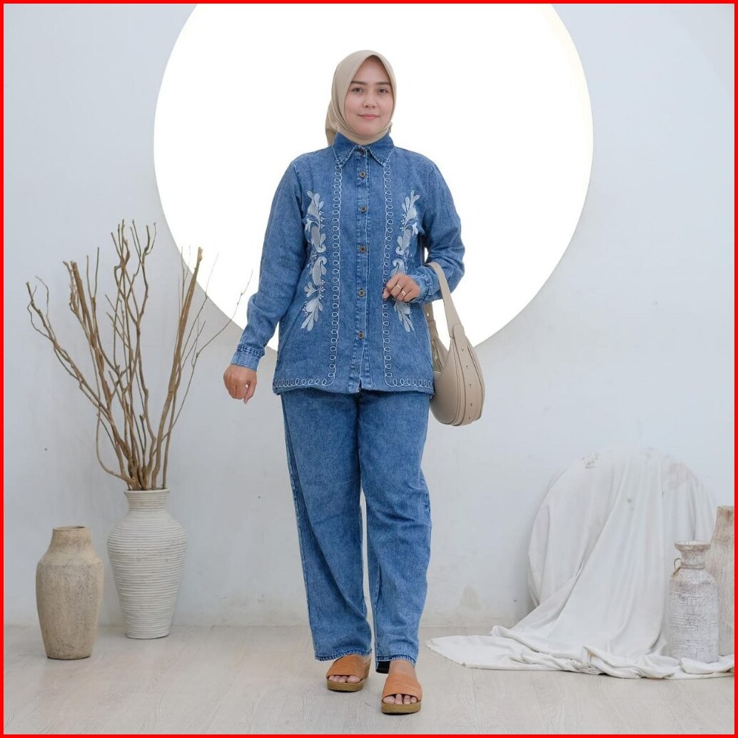 Set Jeans Setelan Wanita Dewasa Kekinian Baju Atasan Celana Panjang