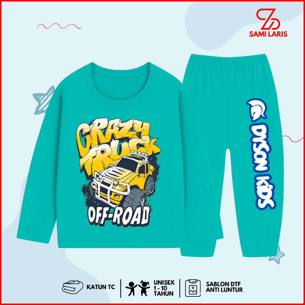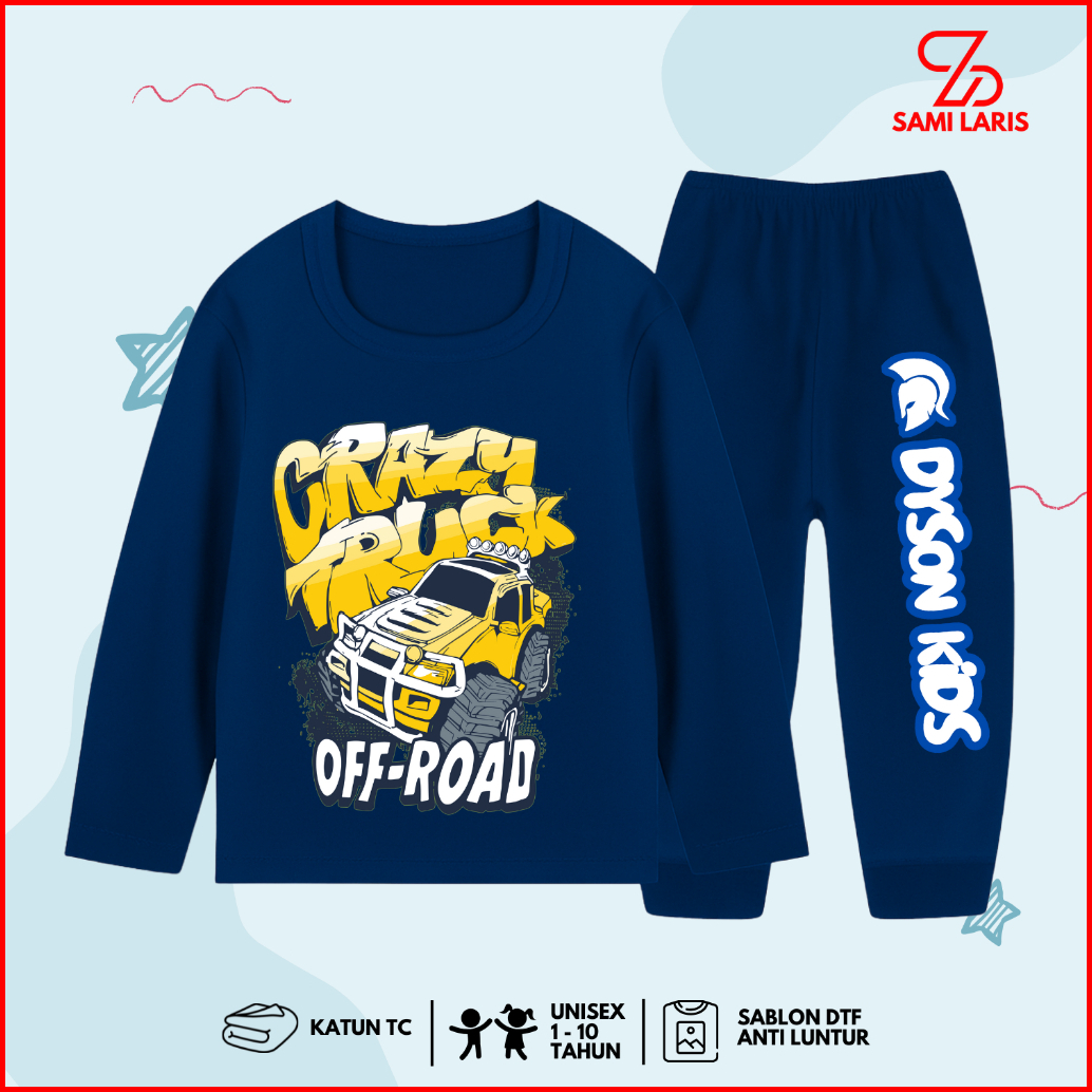 Baju Tidur Setelan Panjang Jeep Anak Laki Laki - Kaos Motif Truck Off-road Cowok 1 - 10 Tahun - Pb