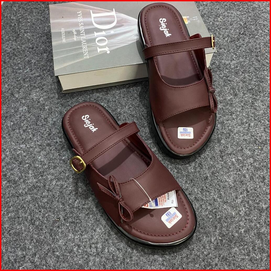 Sandal Platform Wanita Elegant Super Empuk Ringan Kekinian Terbaru Model Slop Tali Gesper Sandal Wanita Lebaran