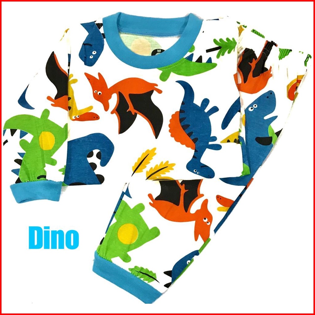 3s Yeya - Baju Tidur Anak Kids Setelan Stelan Bahan Kaos Katun Pp Putih Dino Dinosaurus