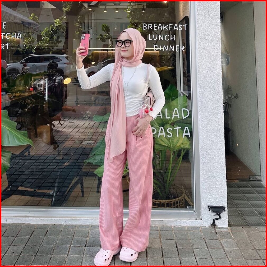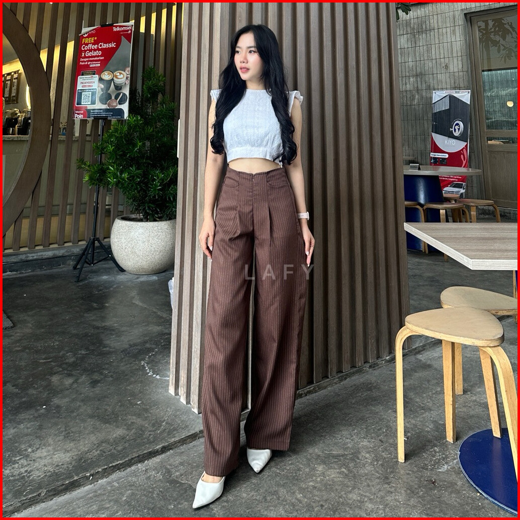 Mf - City Pants Celana Panjang Salur Kulot Kantor