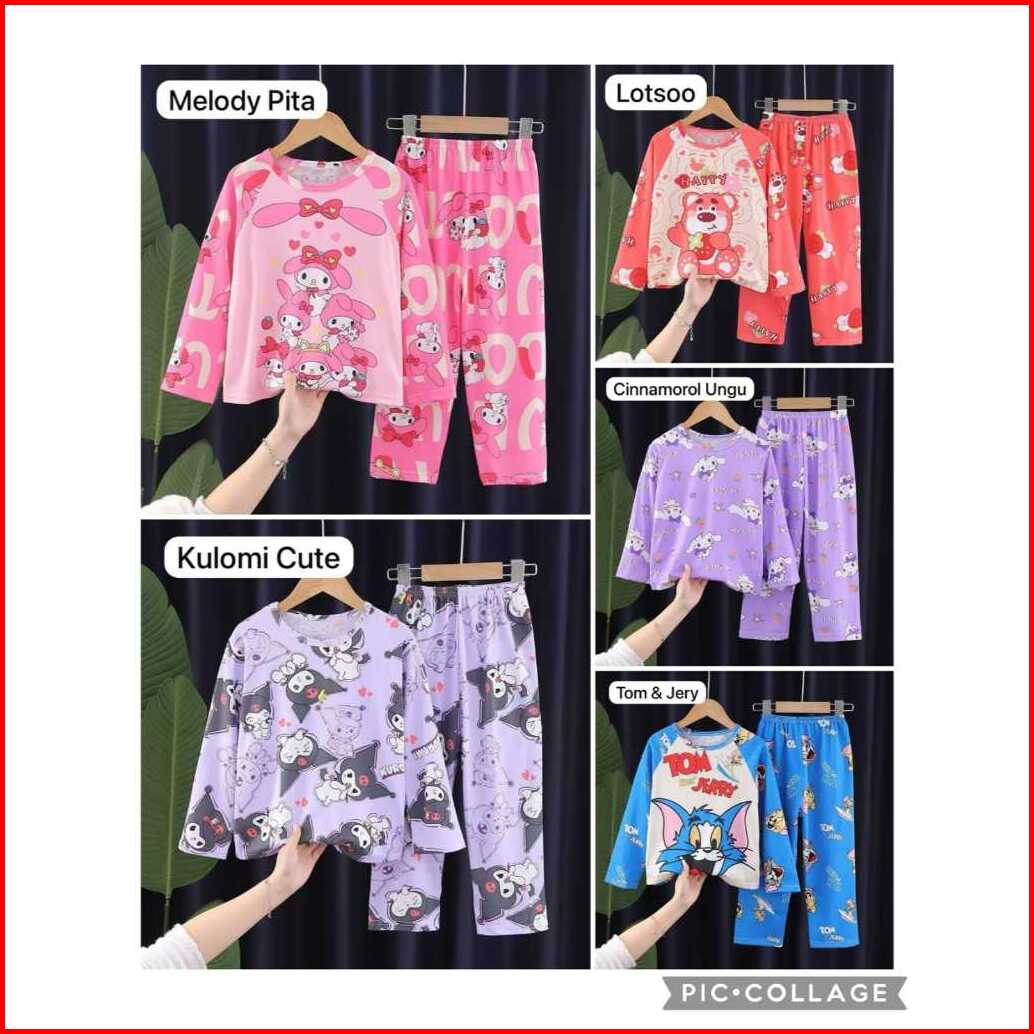 Setelan Piyama Pakaian Baju Tidur Import Anak Perempuan Lengan Panjang Karakter Kartun 3
