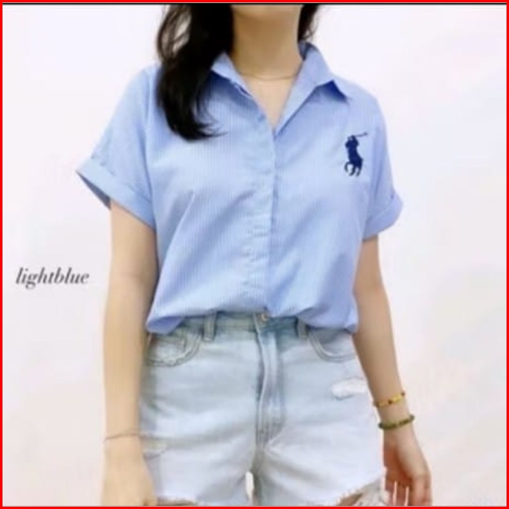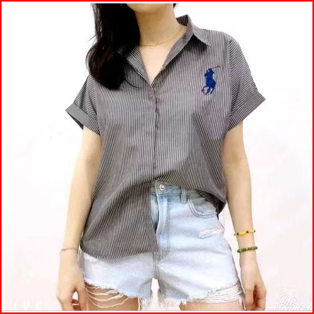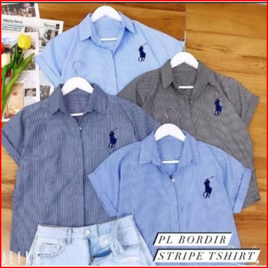 Atasan Kemeja Wanita Strip Salur Shirt Bordir