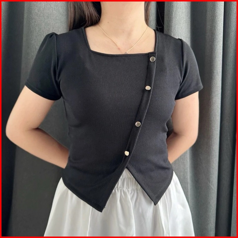 Nr Abby Top - Atasan Lengan Pendek Wanita - Crop Top Wanita - Blouse Rajut Wanita