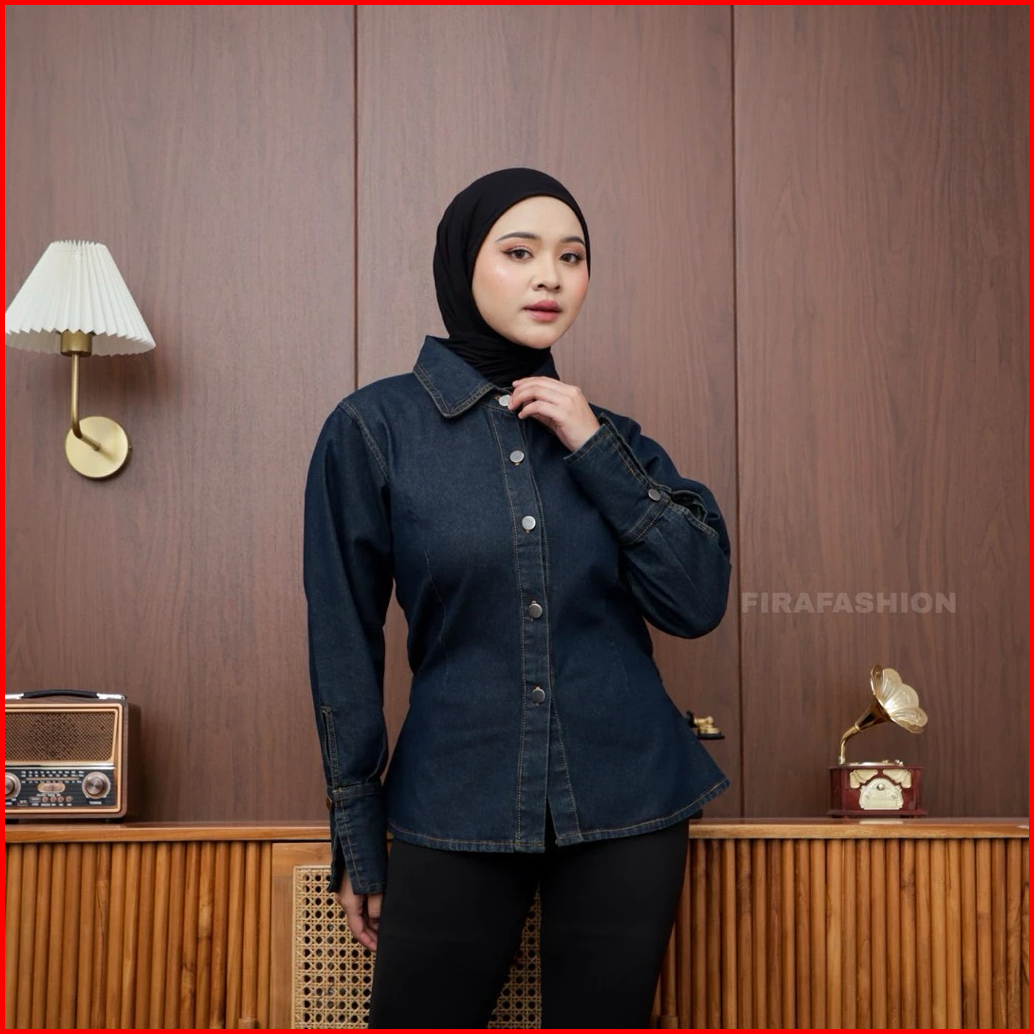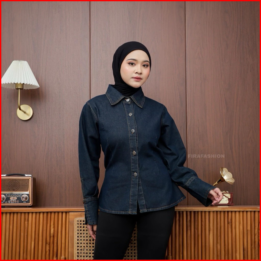 Julia Blouse Fitted Denim Premium Kemeja Jeans Wanita Muslimah Trendi Masakini