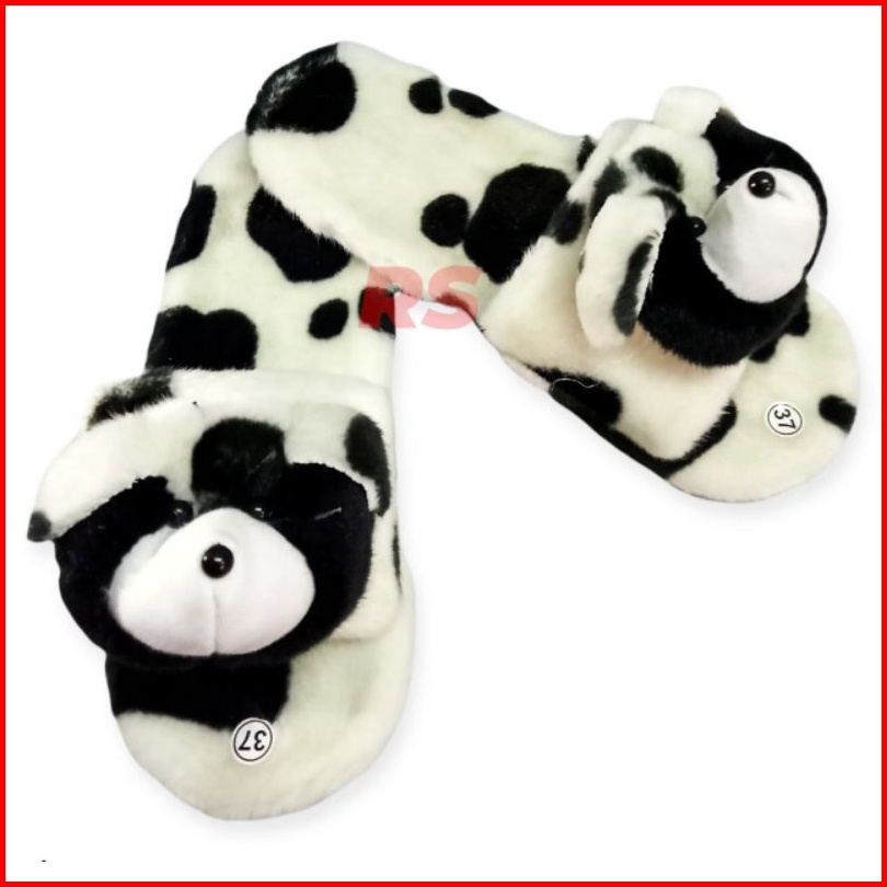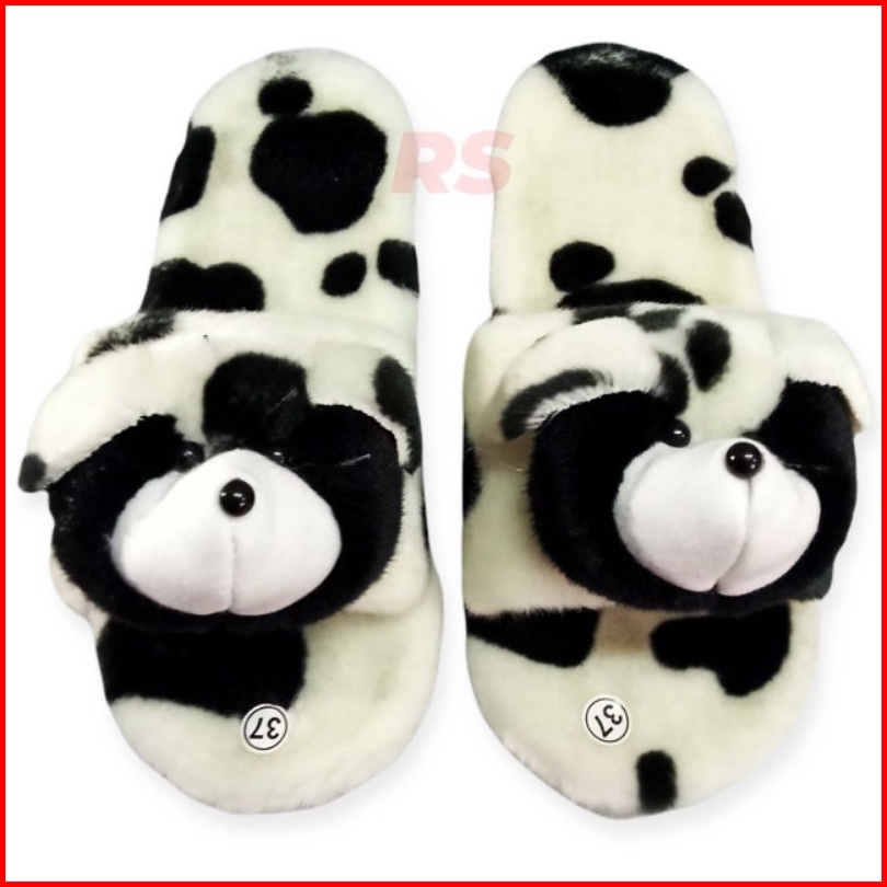 Sandal Boneka Premi Dewasa Motif Totol Sandal Bulu Sandal Rumahan