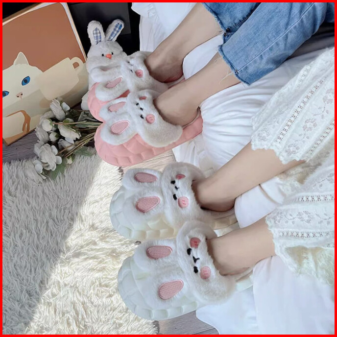 S6085 Sandal Slop Motif Kelinci Sandal Bulu Kelinci Sandal Premium Bulu Halus Sandal Rumah Kelinci Sandal Rumah Wanita M