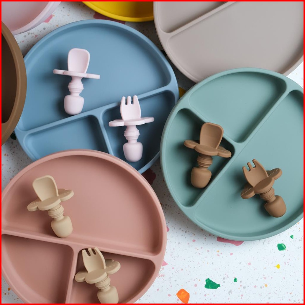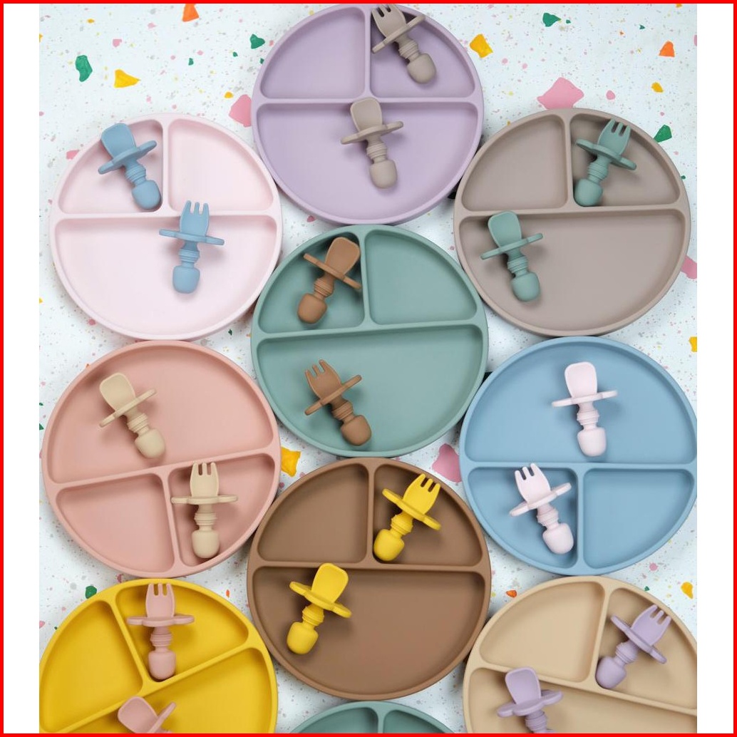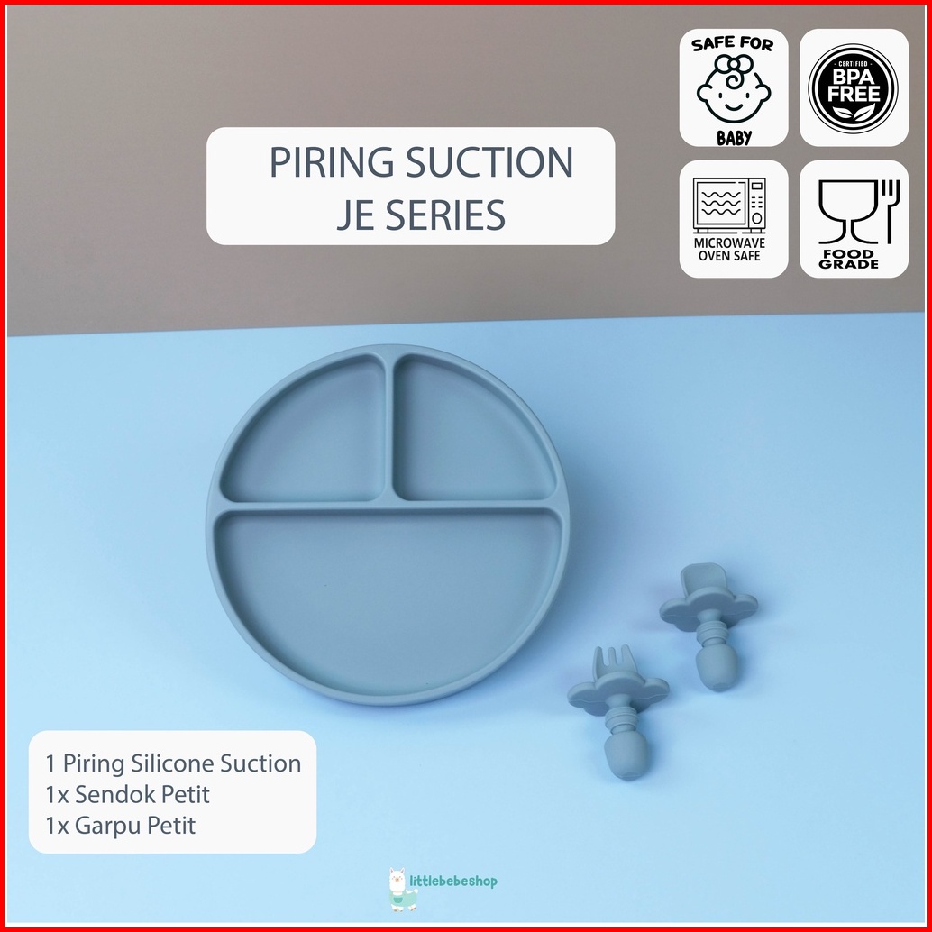 Littlebebeshop - Plate Silicone Suction Training Bayi Je Series 1 Set Sendok Garpu
