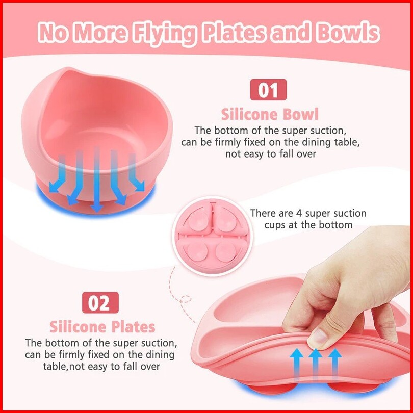 Cookglory Set Piring Makan Bayi Silikon - Piring Silikon Bebas Bpa Set Makan Penting
