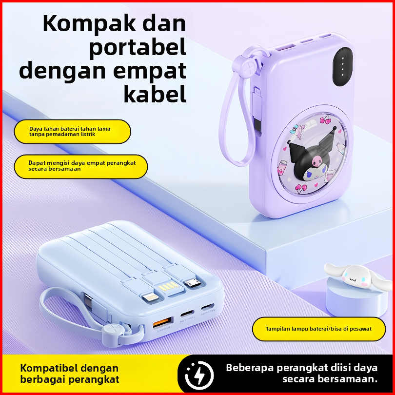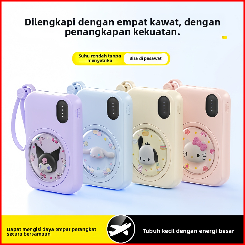 Rccor Power Bank 20000mah Fast Charge Hello Kitty Tahan Lama Kabel Micro Typec Lightning