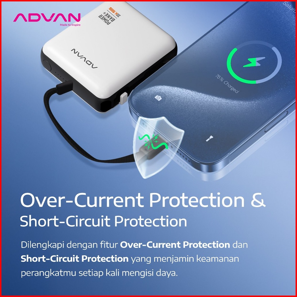 Advan Powerbank Magic10 10000mah Fast Charging 20w Desain Compact Ringan Overcurrent Short-circuit Protection Type C Dua