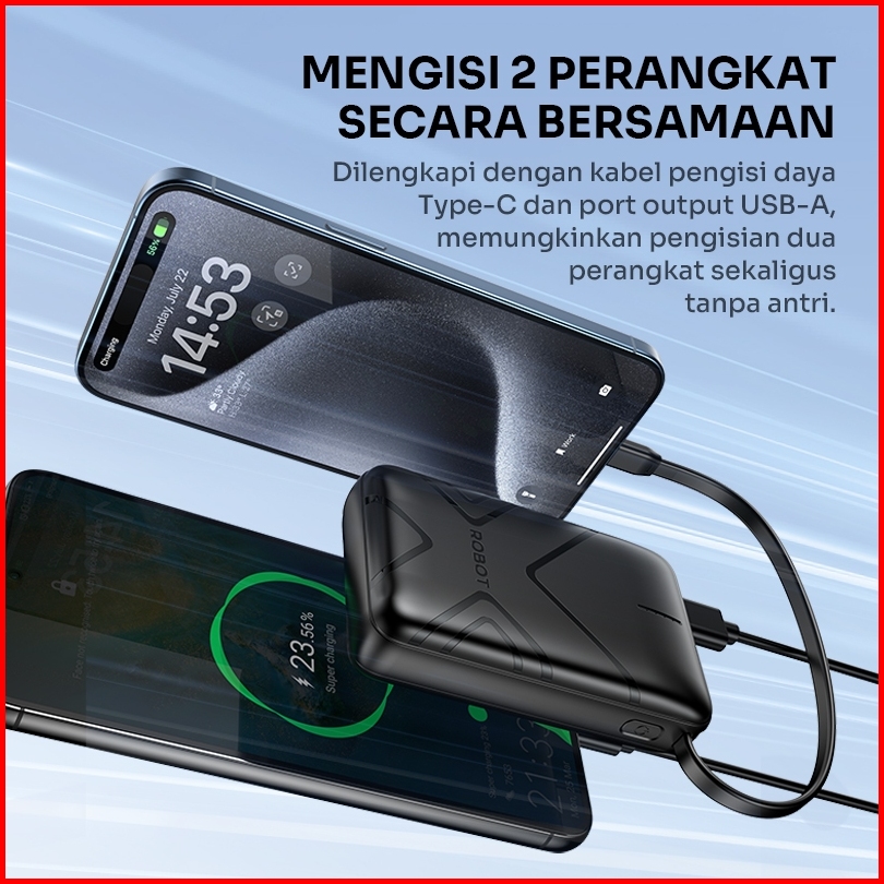 Robot Smart Powerbank Mini 37wh 10000mah With Cable Usb To Type C Power Bank Fast Charging Rt17 Original - Garansi 1 Tah