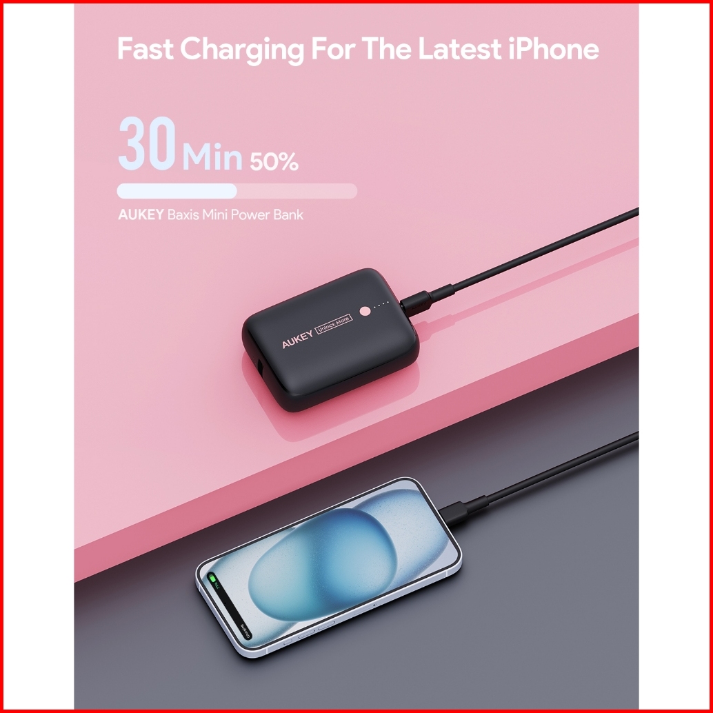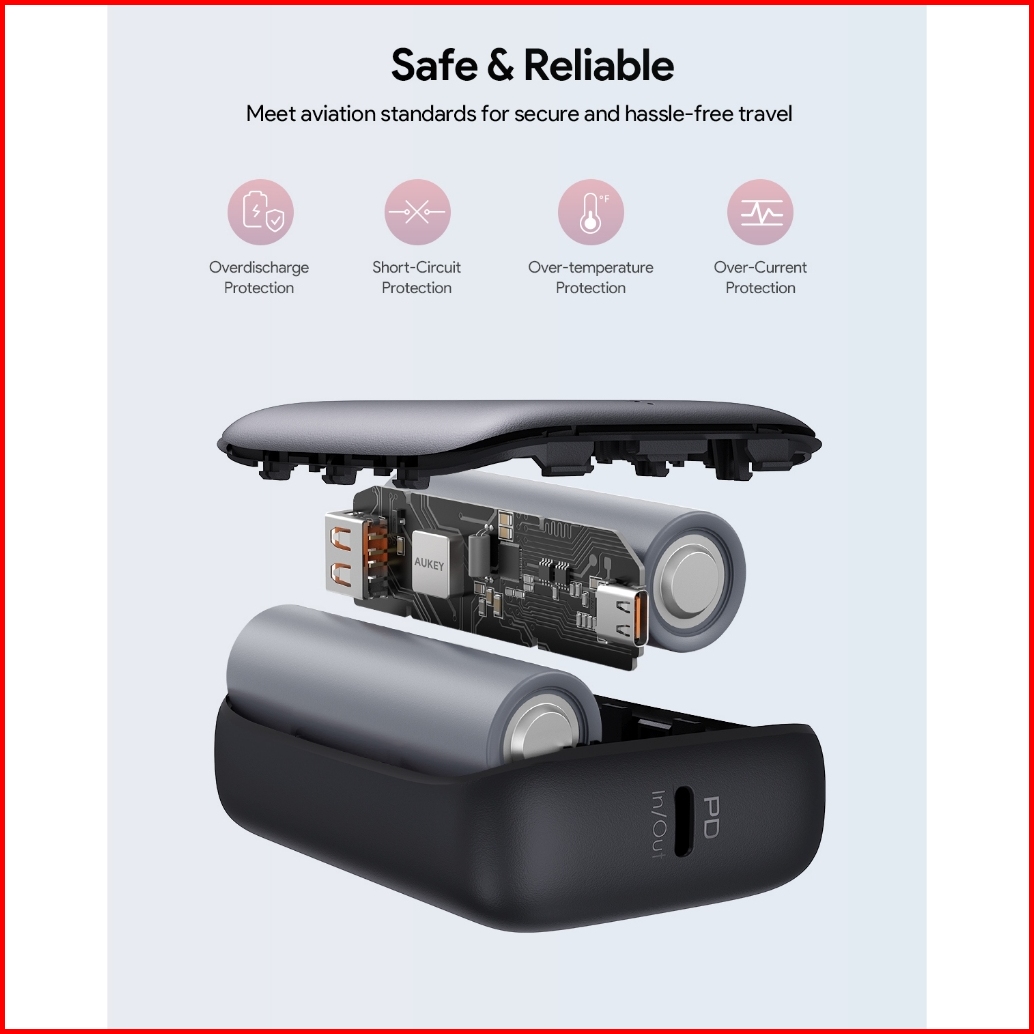 Aukey Power Bank 10000 Mah Mini 22.5w Powerbank Pd 3.0 Multiport Usb Type C Fast Charging Gan Technology Compact Size -