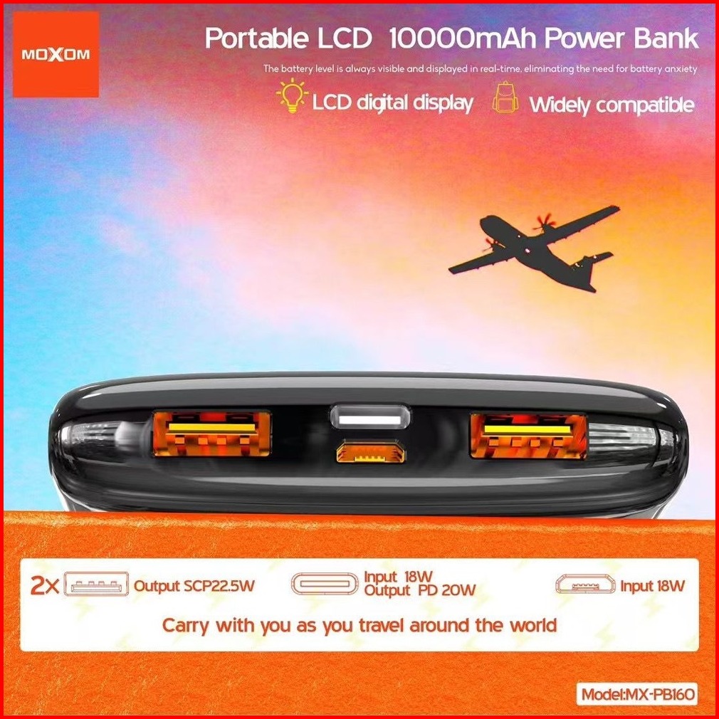 Moxom Powerbank Slim Pd Qc 22 5w 10000mah Digital Display Mx-pb160