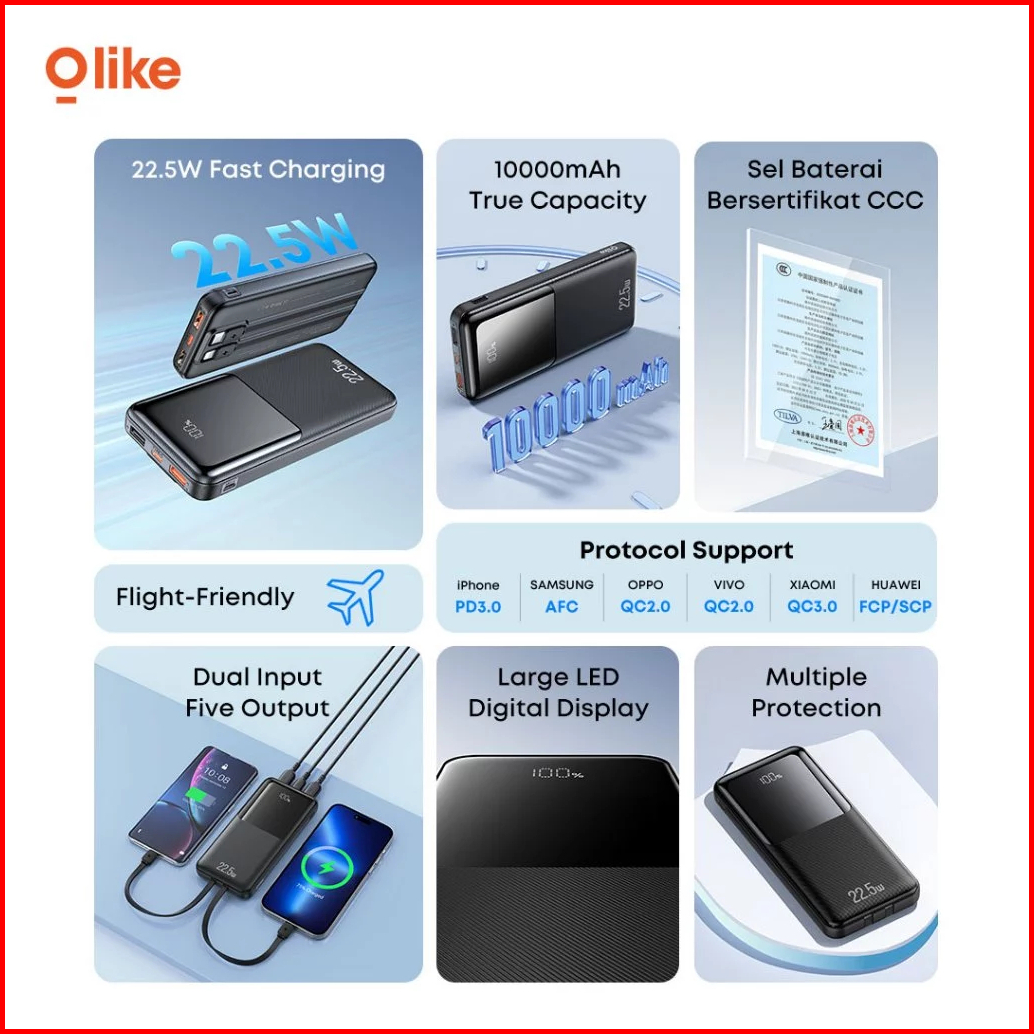 Dzl - Olike P201s Built-in Powerbank 10000 Mah 22.5w Fast Charging Usb Type C Power Bank Original