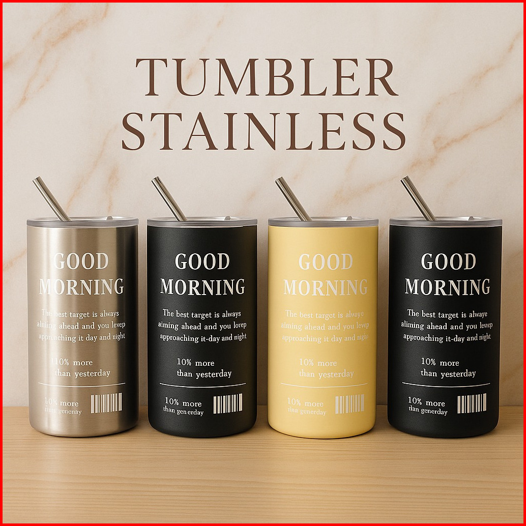 Botol Minum Tumbler Stainless Steel Sedotan Cangkir Botol Minum Kopi Sedotan Cangkir Thermos 500ml