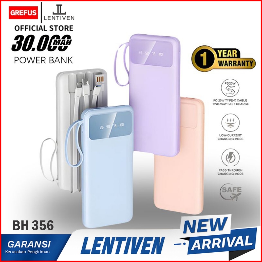 Grefus Lentiven 30000 Mah Powerbank Mini Fast Charging 4 Kabel Lightning Type C For Iphone Led Display Bh356