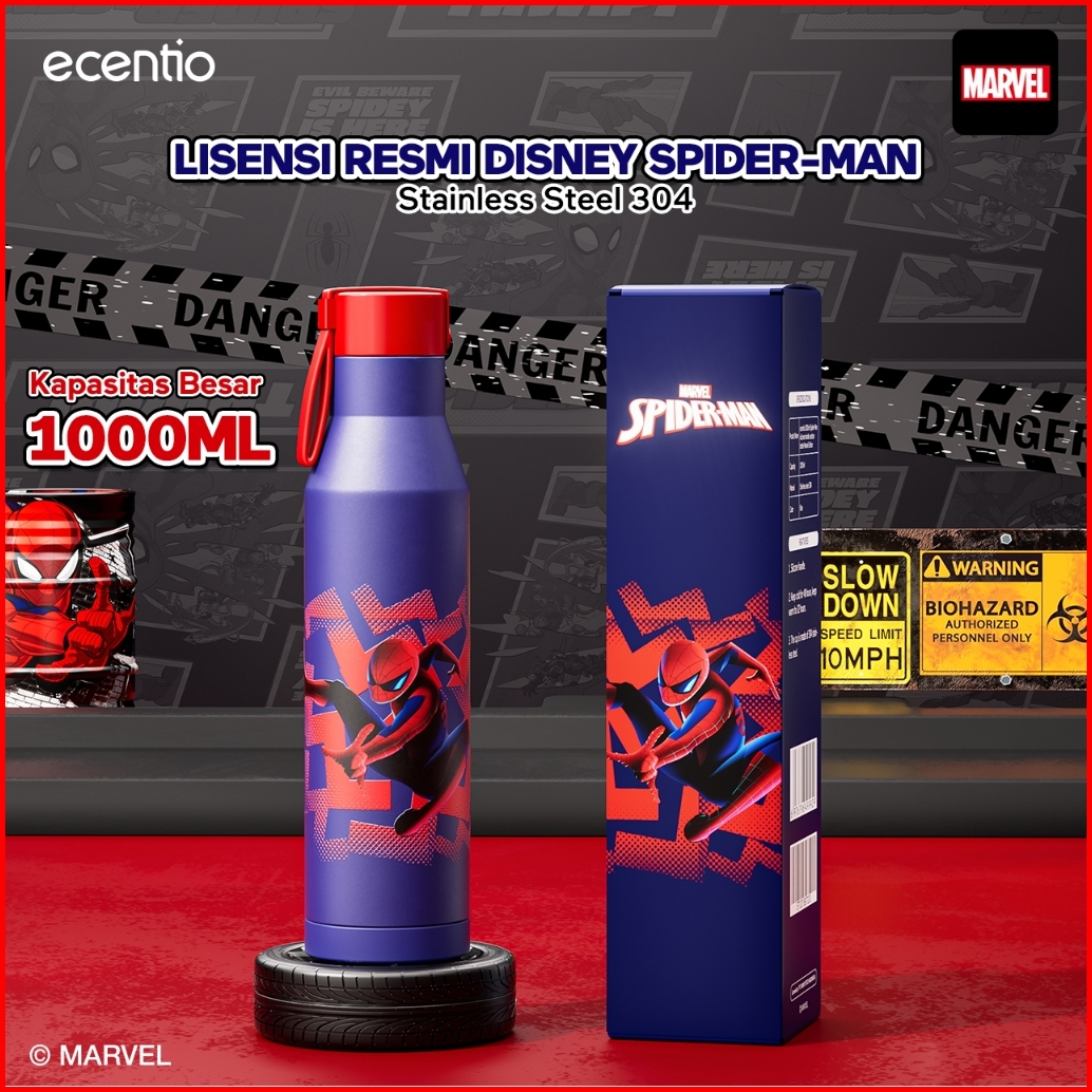 Buy 1 Get 1 Ecentio Botol Minum Stainless 304 Marvel Spider-man 1000ml Tumbler Panas Dingin 48 Jam Anti Bocor 360 Termos