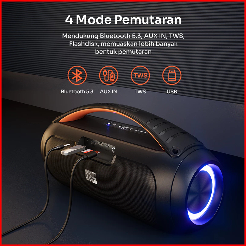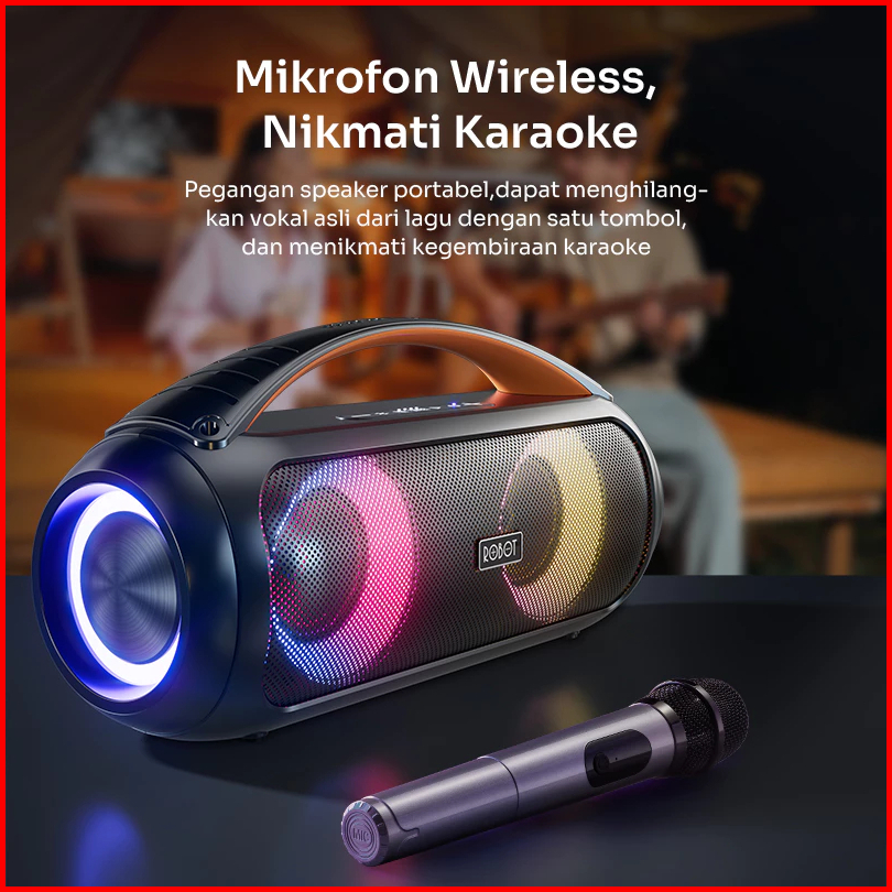 Robot Karaoke Speaker Mic Super Bass Rb600 Wireless Microphone 40w Ipx5 Bluetooth 5.3 Original Garansi 1 Tahun