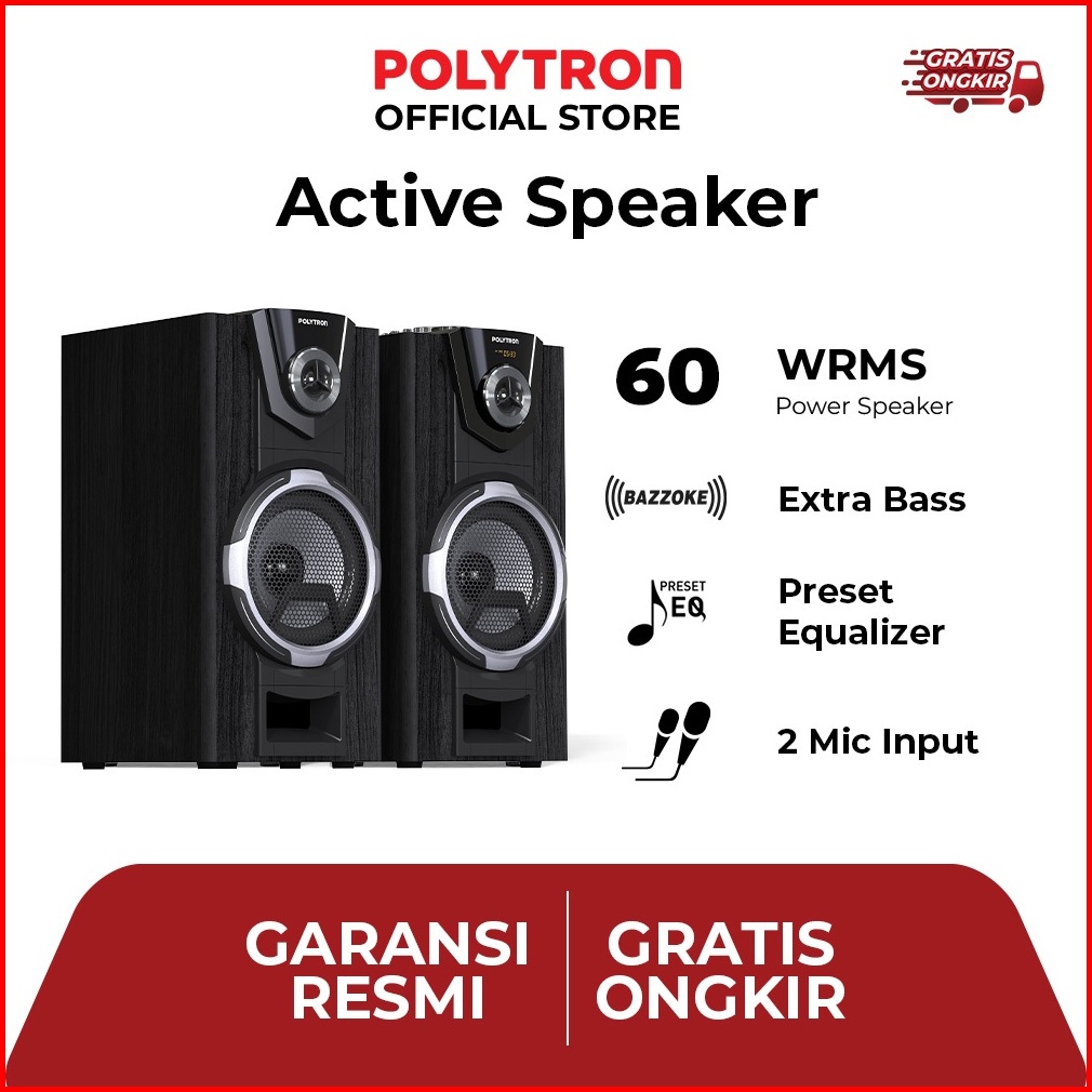 Polytron Bluetooth Speaker Active Karaoke Super Bass Usb Aux Wireless Pas-8f12