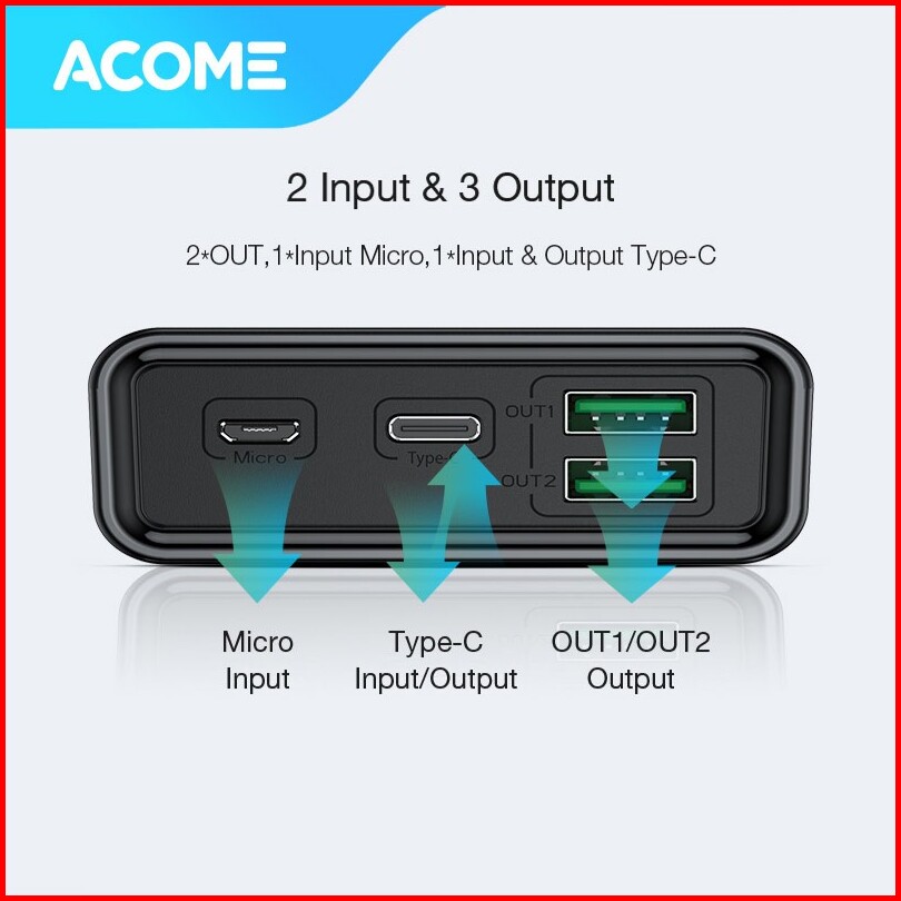 Acome Powerbank 20000mah Fast Charging Led Display Dual Input Three Output Original Ap201 - Garansi Resmi 18 Bulan