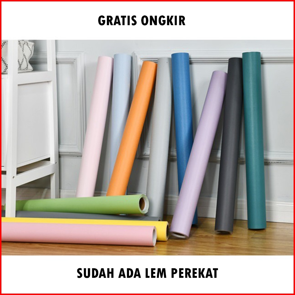 Wallpaper Sticker 45cm X 8m Motif Polos Minimalist Wallsticker Kamar Tidur Ruang Tamu Pvc Waterproof