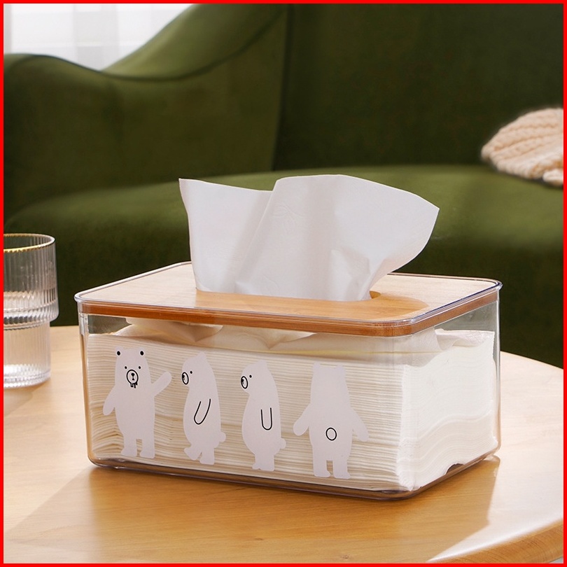 Rumatidykyomi Tempat Tissue Akrilik White Bear Tutup Kayu Estetik Modern Dapur Kamar Mandi